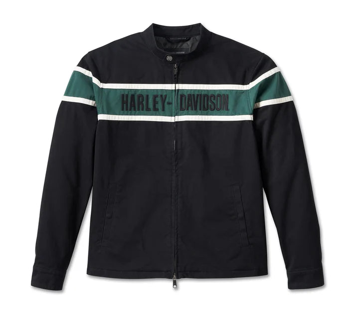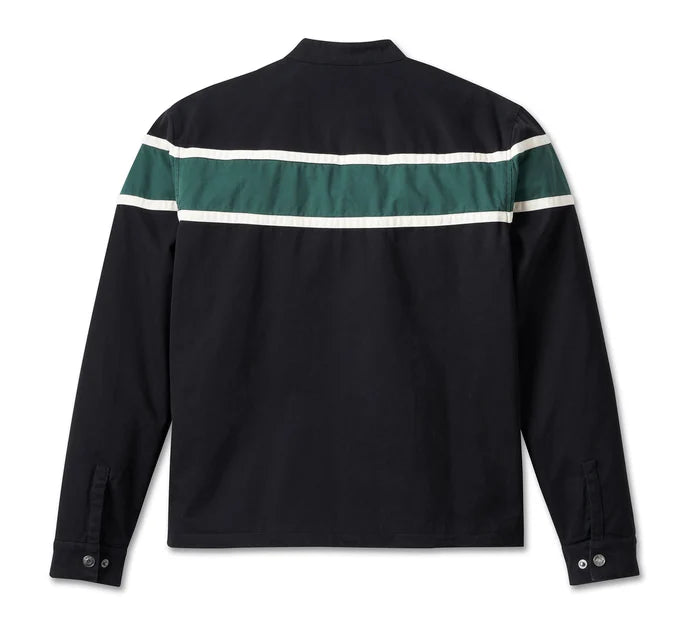 - Design Details: Contrast chest and back piecing. Snap-tab collar.