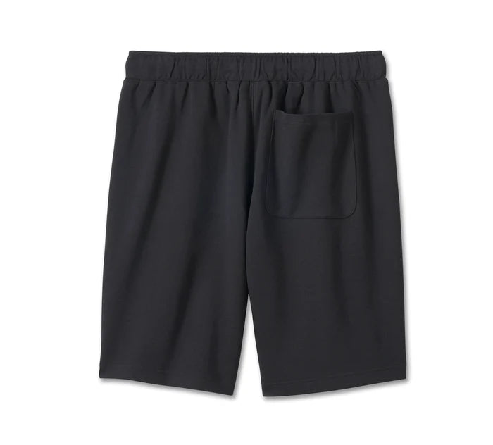 Athleisure style is retooled for Harley fans with our Bar & Shield Fleece Shorts. Crafted from heavyweight cotton/polyester interlock for longwearing comfort and durability in a relaxed fit. Features zippered hand pockets for storing essentials, and is finely finished with a hit of our embroidered graphics.