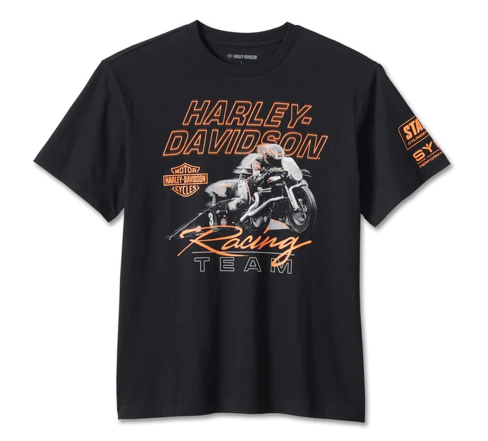 This Limited Edition Factory Tee is a must-have for racing fans. Bold graphics proudly show off the heritage of our winning Harley-Davidson® Factory Team racing. Cut from breathable midweight cotton jersey in an easygoing fit. Add it to your cart before others beat you to it—this t-shirt is only around while supplies last.