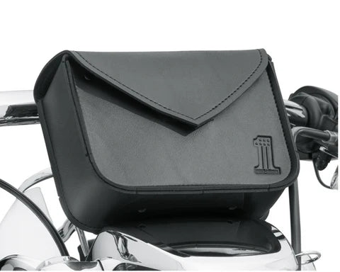 Made of ultra-durable leather-like synthetic. Straight and 90 degree mounting loops make for versatile mounting to your bike. Luggage Capacity: 125 cubic inches total. Maximum weight capacity: 2.5 lbs.Fits risers/handlebars without riser-mounted gauges. Does not fit 100th Anniversary logo windshields or Road Tech Riser Mount Radio.