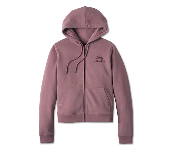 A trifecta of style, comfort, and versatility is here in this newest Miss Enthusiast 3-in-1 Jacket. The outerwear layer is crafted from a heavyweight blend of cotton and nylon oxford that features an action back, adjustable snap-tab waistband, flattering princess and hip seams, and stylish contrast piecing. You’ll have a stay-warmer option with its removable cotton-poly hoodie that sports a sturdy zip front, lined hood, and roomy kangaroo pockets. Wear the jacket alone, the hoodie alone, or combine them together—either way it’s an ideal pack-along piece for road trips and rallies. Beautifully embroidered with our scripted branding and seasonal graphics. In fact, the eagle is inspired by mid 1970s and early 1980s graphics in our archives. Order yours now while supplies last.