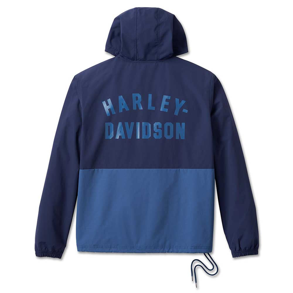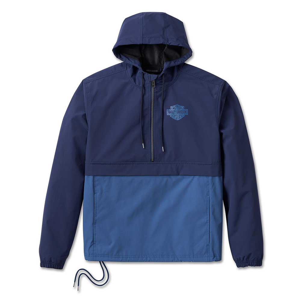 - Design Details: Encased elastic sleeve openings. Colorblock piecing. Drawstring hood and hem.