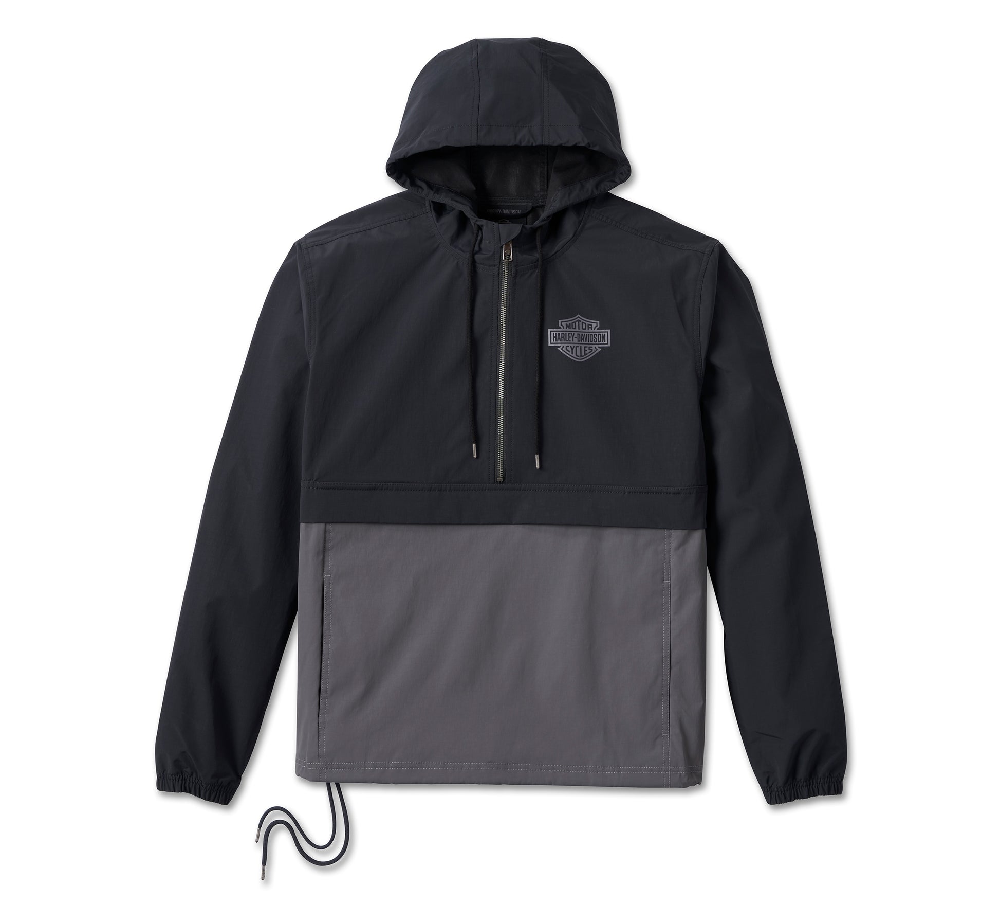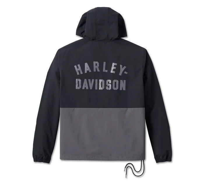 • Design Details: Encased elastic sleeve openings. Colorblock piecing. Drawstring hood and hem.