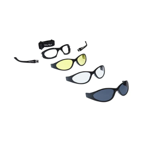 - Interchangeable lens colour options so you can change the lens colour to best suit riding conditions. Simply remove the arms and place them into the desired lens colour.
