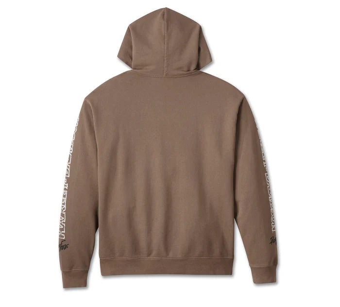Casual comfort meets iconic style in the Willie G Winged Wheel Pullover Hoodie. Its heavyweight yet breathable cotton French terry build delivers a relaxed fit that’s enzyme washed for a well-worn feel. This unisex hoodie is American made with exclusive artwork showcased on front and riding down both sleeves. Part of the Willie G Ride Free Collection that’s inspired by sketches created and hand-picked by Willie G. to celebrate his creative legacy. Know the history—in addition to his iconic artwork used on H-D apparel, Willie G. Davidson personally designed several motorcycles, including the 1971 FX Super Glide and the 1977 FXS Low Rider.