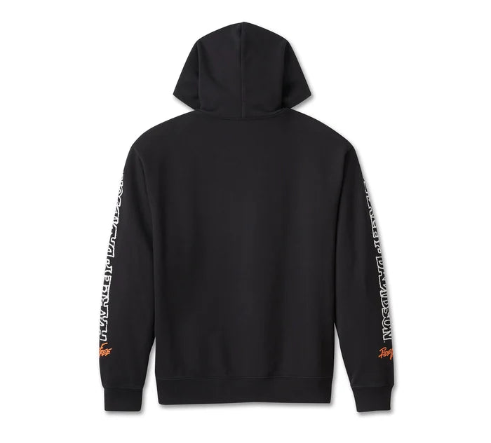 Casual comfort meets iconic style in the Willie G Winged Wheel Pullover Hoodie. Its heavyweight yet breathable cotton French terry build delivers a relaxed fit that’s enzyme washed for a well-worn feel. This unisex hoodie is American made with exclusive artwork showcased on front and riding down both sleeves. Part of the Willie G Ride Free Collection that’s inspired by sketches created and hand-picked by Willie G. to celebrate his creative legacy. Know the history—in addition to his iconic artwork used on H-D apparel, Willie G. Davidson personally designed several motorcycles, including the 1971 FX Super Glide and the 1977 FXS Low Rider.