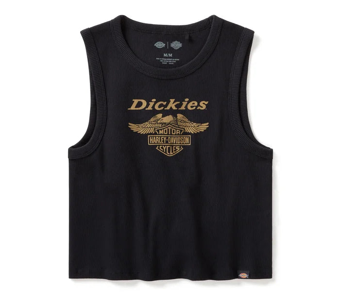 Flatter your shape in stay-cool comfort with the Dickies® x H-D® Racerback Cropped Eagle Tank. Made from breathable 100% cotton that’s ribbed for a textured look. It delivers a regular fit in a slightly cropped silhouette that sits at or just above the waistline. Finished with signature graphics and branding on front. Part of the Dickies® x H-D® Collaboration—special-edition apparel that merges iconic workwear with iconic motorcycle culture.